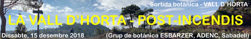 Els incendis de l’agost de 2003 a la Vall d’Horta (Vallès Occidental, Barcelona) van provocar estralls. Aquesta passejada botànica per Sant Llorenç Savall i la Vall d’Horta ens servirà per comprovar com ha quedat el paisatge i com s’ha anat recuperant la vegetació a partir d’aquell gran incendi d’ara fa quinze anys. En les zones limítrofes de l’incendi podrem comparar bosc sense cremar amb espais cremats: Així era … Així és … Continua la lectura de “BOTÀNICA A LA VALL D’HORTA (St. Llorenç Savall)”